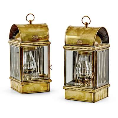 PAIR OF VICTORIAN BRASS YACHT OIL LAMPS, BY DAVEY & CO.
