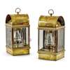 the arched hoods with ring handles above bevelled glass sides and a reflecting panel to the back, the interiors fitted with removable oil lamps with glass chimneys and square reservoirs; with Davey & Co. brass trade labels (2)