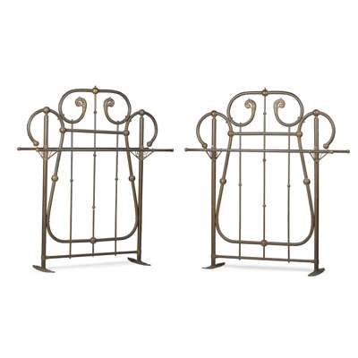 PAIR OF LARGE ART NOUVEAU BRASS STANDING COAT RAILS