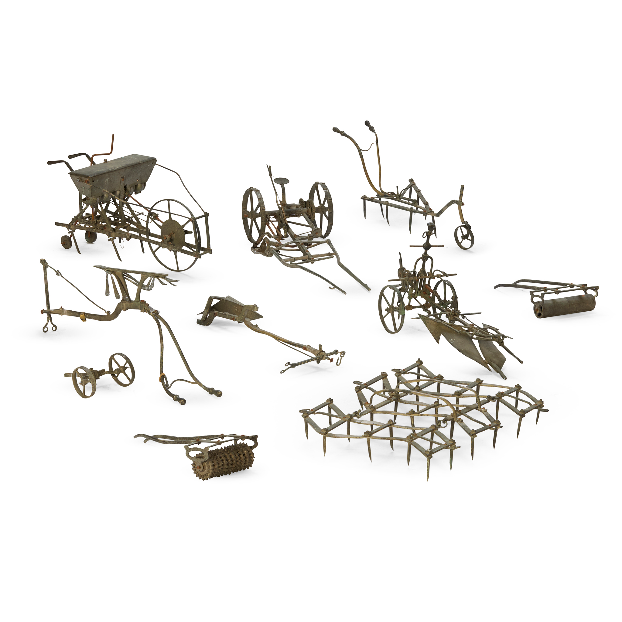 comprising various ploughs, a harrow, a seed planter, a roller and other machinery, unmarked (qty)