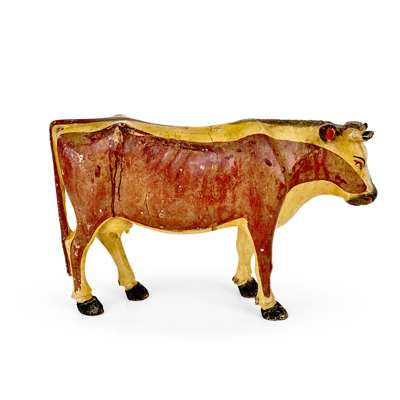 CARVED AND PAINTED WOODEN MODEL OF A COW
