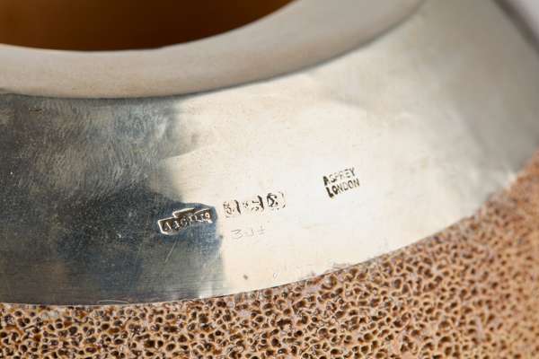 of globular form with a plain silver collar, stamped FINNIGANS; impressed ROYAL DOULTON mark to the base and 4104; the other stamped ASPREY LONDON, impressed maker's mark and 4925 (2)
