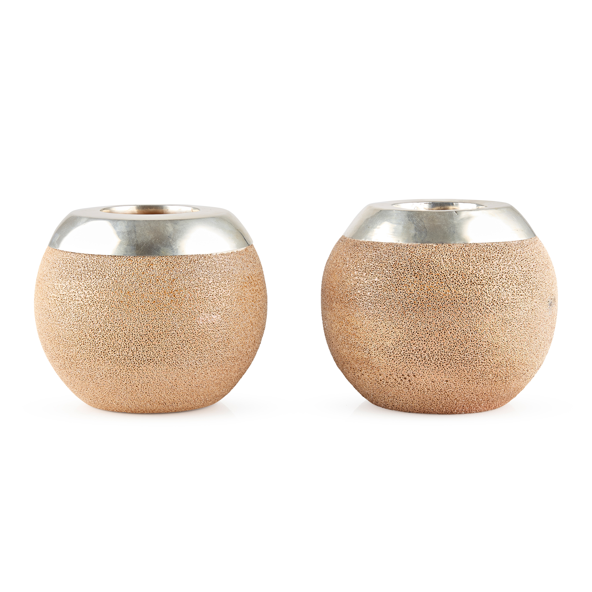 MATCHED PAIR OF LARGE SILVER-MOUNTED ROYAL DOULTON POTTERY MATCH STRIKERS