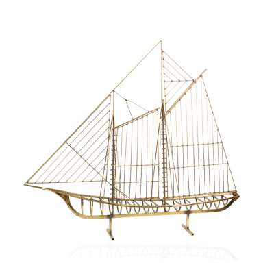 depicting a wire model of a schooner in full sail