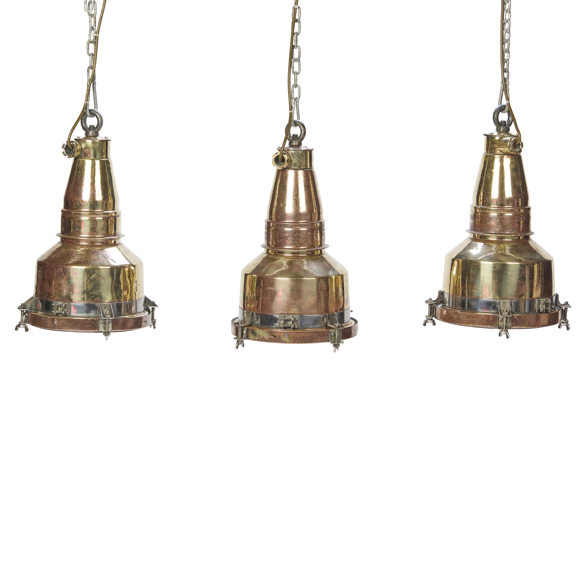 SET OF THREE DANISH COPPER, STEEL, AND BRASS SHIP LIGHTS