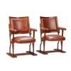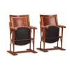 PAIR OF EDWARDIAN MAHOGANY LEATHER UPHOLSTERED THEATRE SEATS
