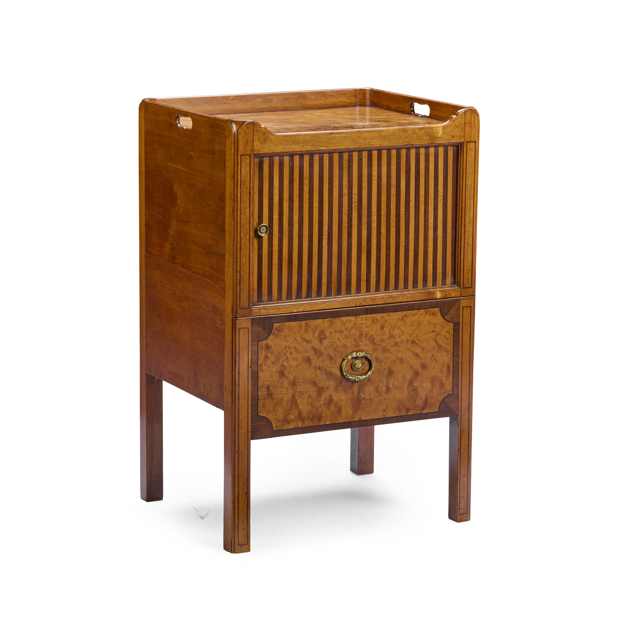 LATE GEORGE III SATINWOOD AND TULIPWOOD BEDSIDE COMMODE