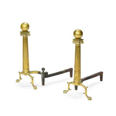 PAIR OF GEORGE III NEOCLASSICAL BRASS AND IRON ANDIRONS