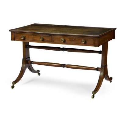 LATE GEORGE III MAHOGANY AND EBONISED WRITING TABLE