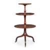 with three circular dished and graduated tiers, raised and divided by baluster supports, on an umbrella tripod base with brass castors