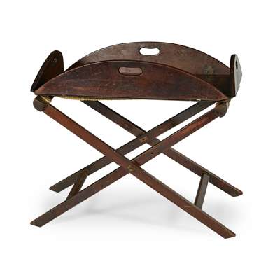 LATE GEORGE III MAHOGANY BUTLER'S TRAY AND STAND