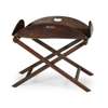 the oval tray with hinged sides with cut-out handles, on an associated folding X stand