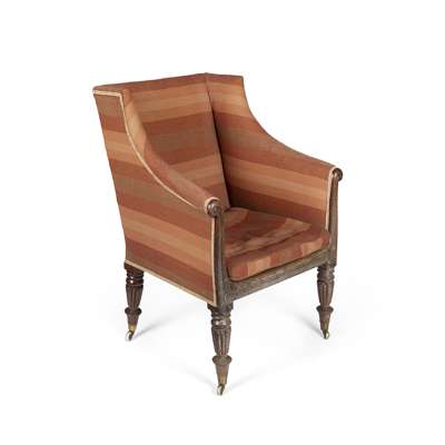 REGENCY MAHOGANY UPHOLSTERED ARMCHAIR