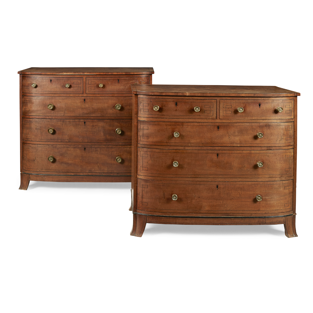 NEAR PAIR OF REGENCY MAHOGANY AND EBONISED BOWFRONT CHESTS OF DRAWERS, IN THE MANNER OF GILLOWS