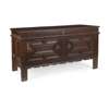 the hinged top above a fielded twin-panel front, flanked by stop-fluted pilasters and raised on stile feet