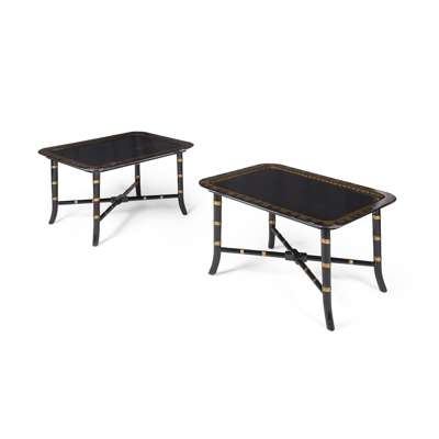 PAIR BLACK LACQUER AND PARCEL GILT LOW TABLES