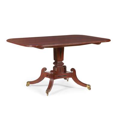 REGENCY MAHOGANY, PARTRIDGEWOOD, AND STAINED FRUITWOOD BREAKFAST TABLE
