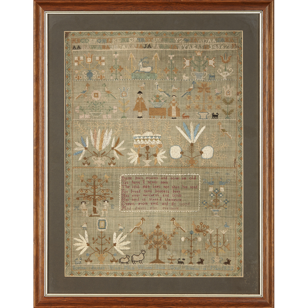 GEORGE IV PICTORIAL NEEDLEWORK SAMPLER, BY SOPHIA ALLAN
