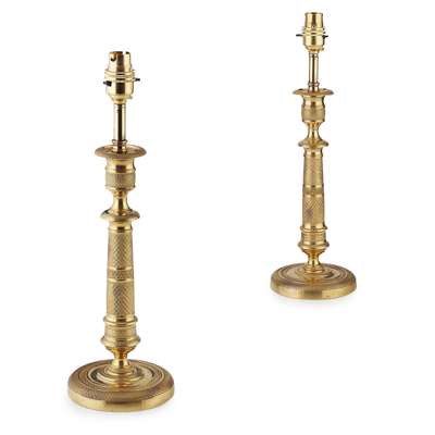 PAIR OF REGENCY GILT BRONZE TABLE LAMPS