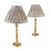 previously candlesticks, with baluster-form nozzles on tapered columns with engine-turned bands and circular bases, with pleated shades (2)