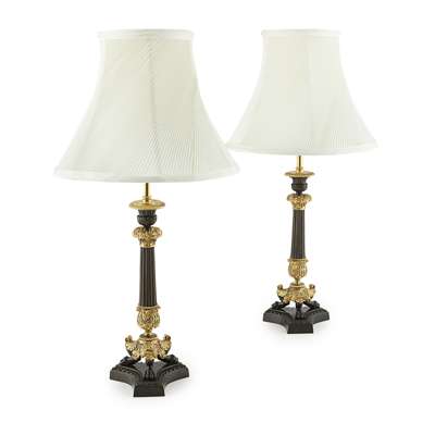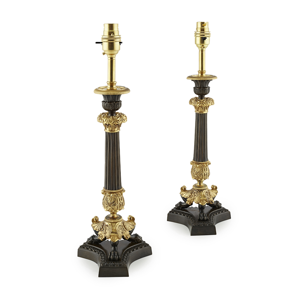 PAIR OF REGENCY GILT AND PATINATED BRONZE TABLE LAMPS