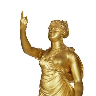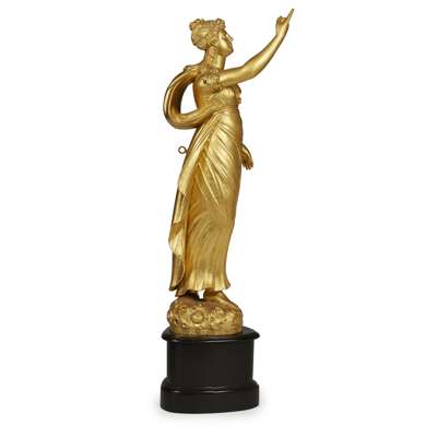 the draped standing figure of a maiden with adjustable arms, on an associated ebonised plinth