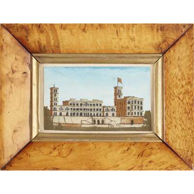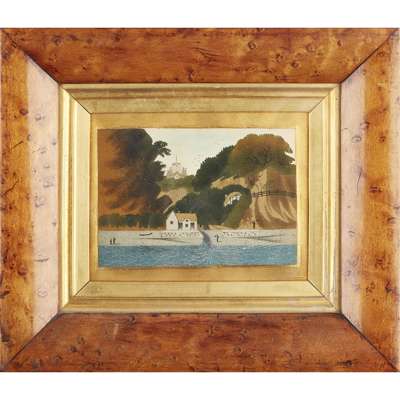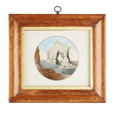 comprising a large scene of Shanklin Chine, 9.5cm x 13.5cm; a circular depiction of Arched Rock, 12cm diam.; and Osbourne House, attributed to Edward Dore, 6.5cm x 10.5cm, all in maple frames (3)