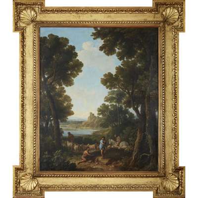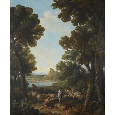 A CLASSICAL LANDSCAPE WITH SHEPHERDS AND HORSEMAN