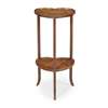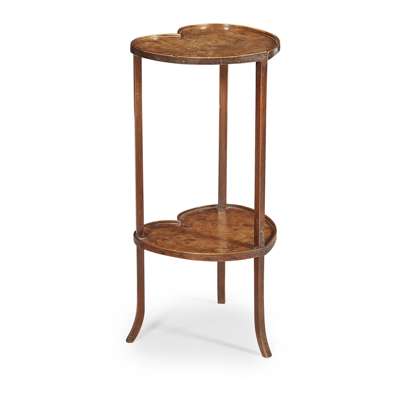 with two tiers, each with band moulding, raised and divided by square legs with splayed feet