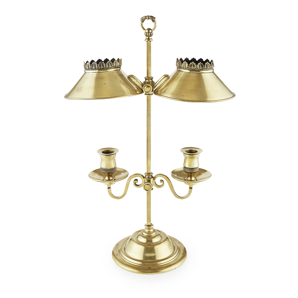 VICTORIAN BRASS BOUILLOTTE LAMP, BY MILLER & SONS, LONDON