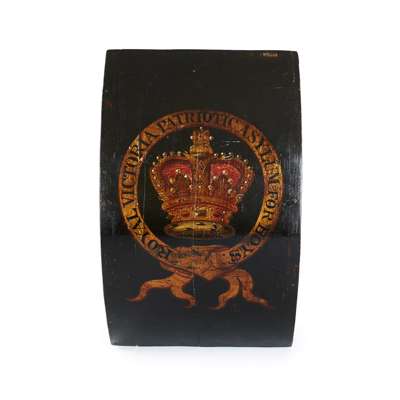 the bowed panel painted with a crown enclosed by a banner inscribed ROYAL VICTORIA PATRIOTIC ASYLUM FOR BOYS against a black ground