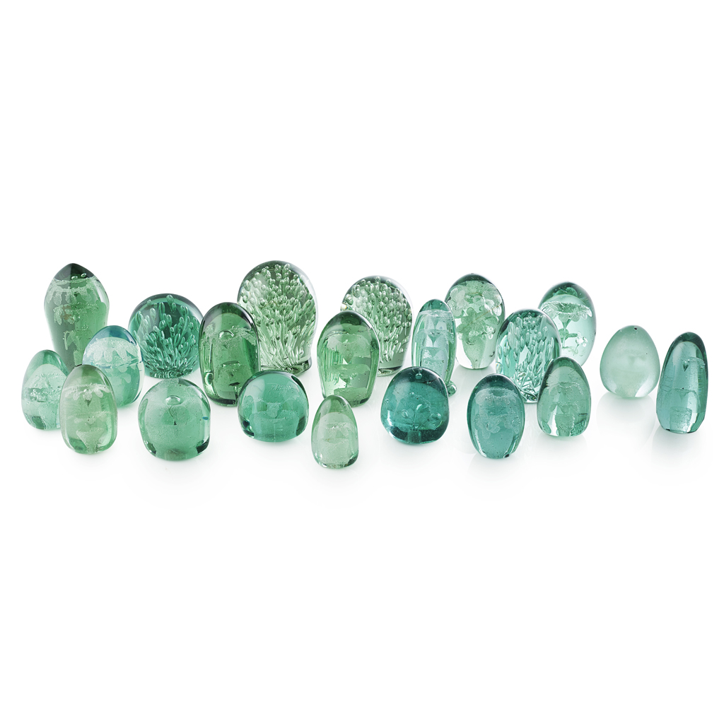 comprising twenty-one examples of various size, four with interior glass bubbles, the remainder with interior flowers (21)