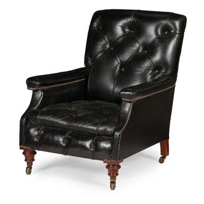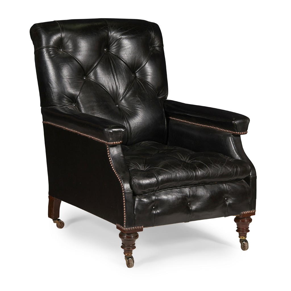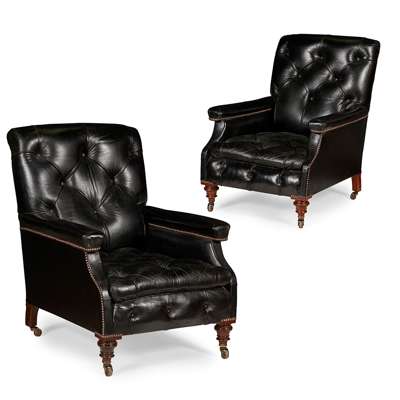 PAIR OF VICTORIAN BLACK LEATHER ARMCHAIRS