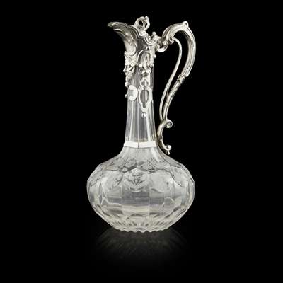 VICTORIAN SILVER MOUNTED ENGRAVED GLASS DECANTER