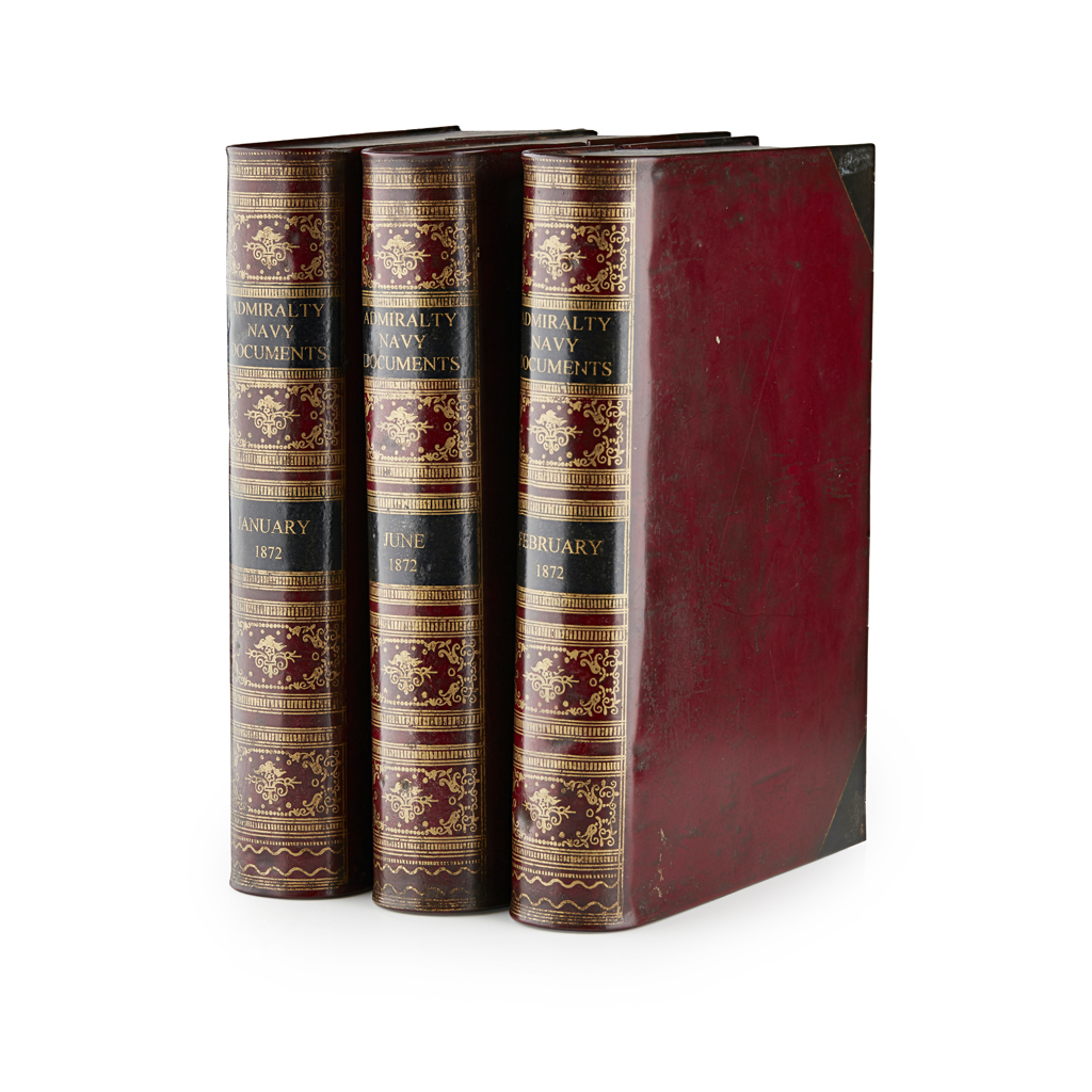 each with simulated red morocco covers and gilt spines with marbled page edges, marked ADMIRALTY NAVY DOCUMENTS and 1872, with various months (3)