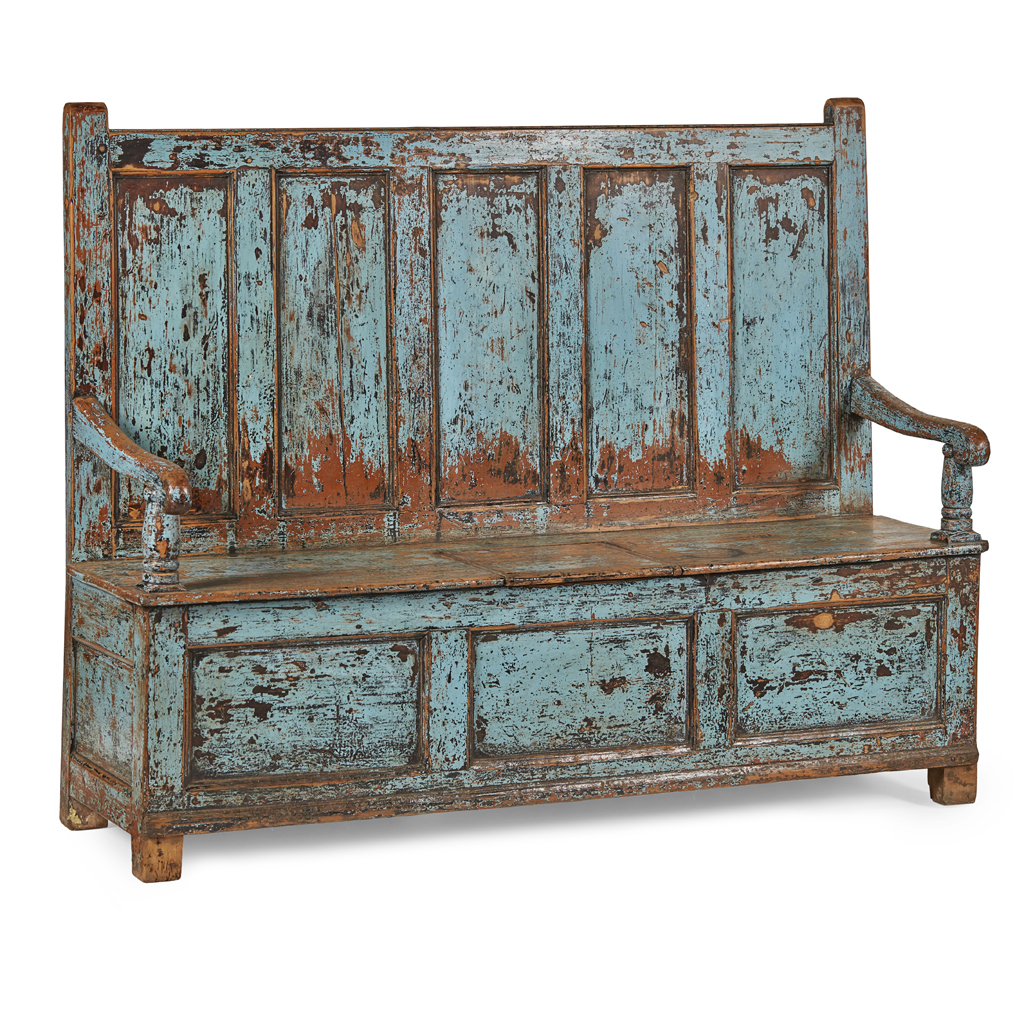 GEORGIAN BLUE PAINTED PINE BOX SETTLE