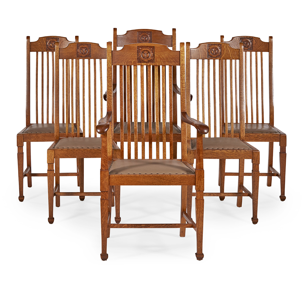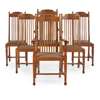 SET OF SIX OAK ARTS AND CRAFTS DINING CHAIRS