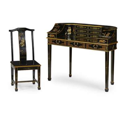 BLACK JAPANNED CARLTON HOUSE DESK AND CHAIR