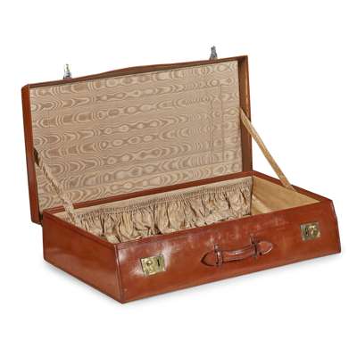 LEATHER CAR TRUNK, OF VINTAGE MOTORING AND ROLLS ROYCE INTEREST