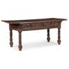 the single board top above a foliate carved panelled frieze with two short drawers, raised on turned baluster legs headed by foliate carved blocks