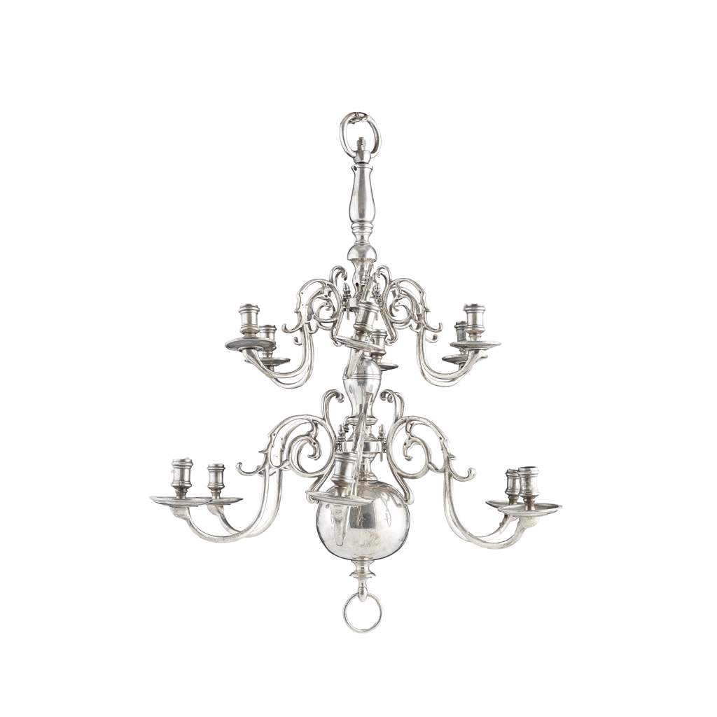 DUTCH NICKEL SILVER TWELVE-LIGHT CHANDELIER
