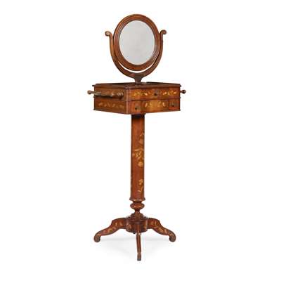 DUTCH WALNUT AND MARQUETRY SHAVING STAND