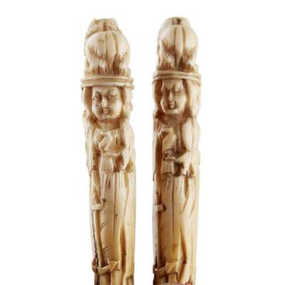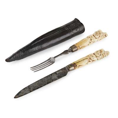SCANDINAVIAN CARVED IVORY HANDLED KNIFE AND FORK SET Y