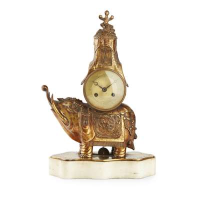 FRENCH GILT BRONZE ELEPHANT-FORM MANTEL CLOCK