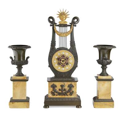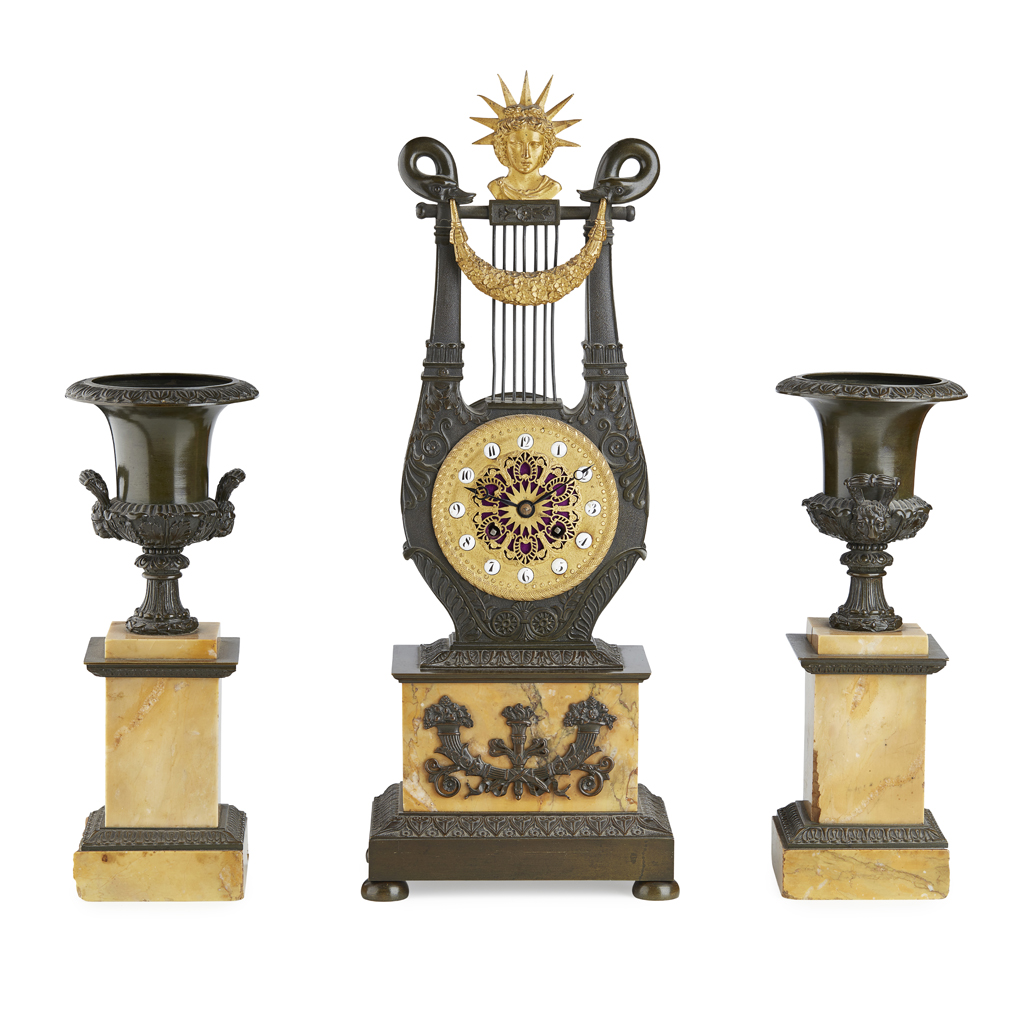 FRENCH EMPIRE STYLE THREE PIECE CLOCK GARNITURE