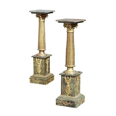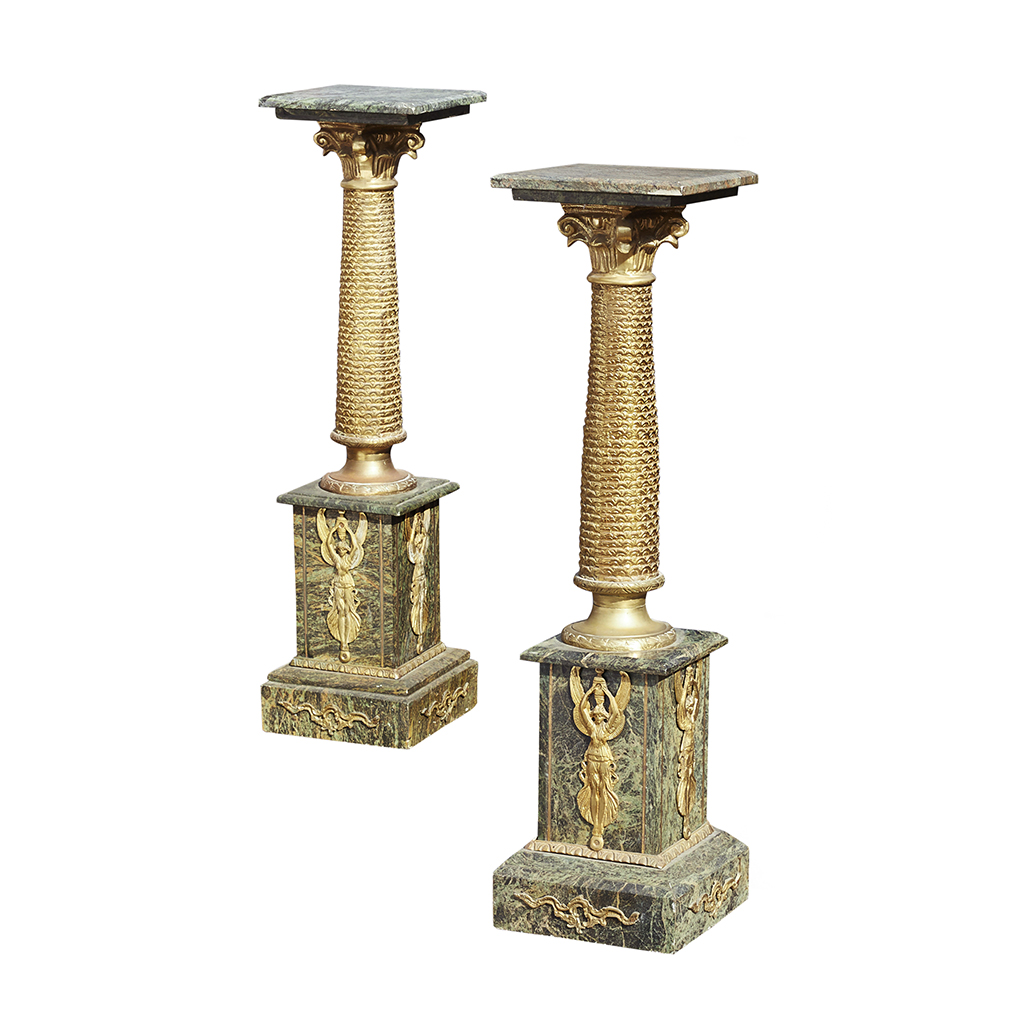 PAIR OF EMPIRE STYLE MARBLE AND GILT METAL PEDESTALS