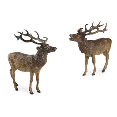 PAIR OF AUSTRIAN COLD PAINTED BRONZE FIGURES OF STAGS
