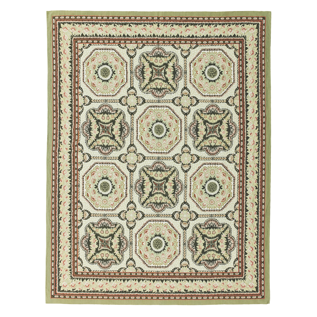 the patterned olive field with three columns of four shaped green medallions, within bottle green foliate vine border