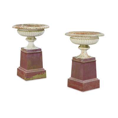 of low campana form with egg and dart rims and lobed bodies, on square tapered bases, in two parts (2)