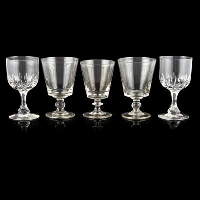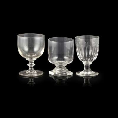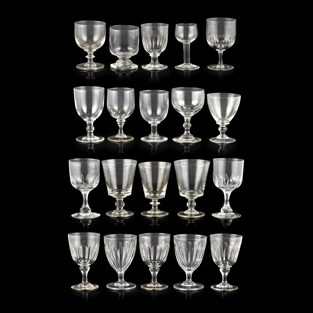comprising eleven cut-glass examples, and nine plain glasses, including a small pub rummer and an example on a square foot (20)